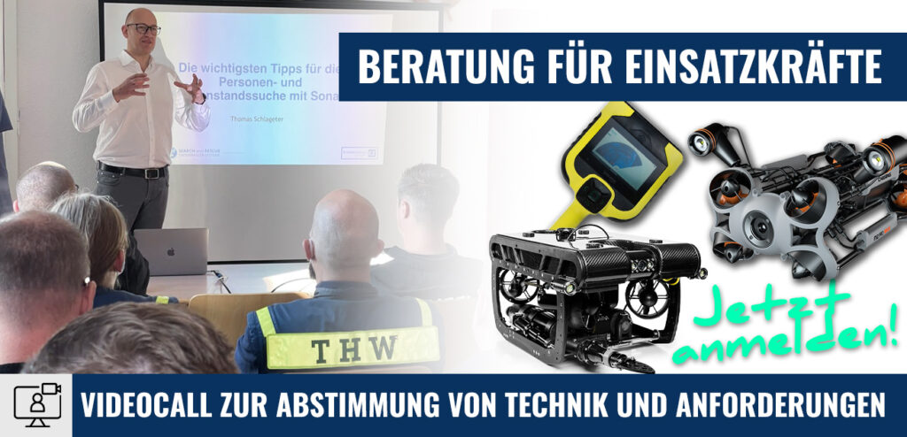 Wir bieten ausgewählte Spezialtechnik in den Bereichen Sonar, ROV´s (Unterwasserdrohnen), Unterwasserkameras, Wärmebildkameras, Vermessung und Kartografierung. Alles was Behörden für Suchen, Retten, Bergen und Aufzeichnen in Gewässern benötigen.